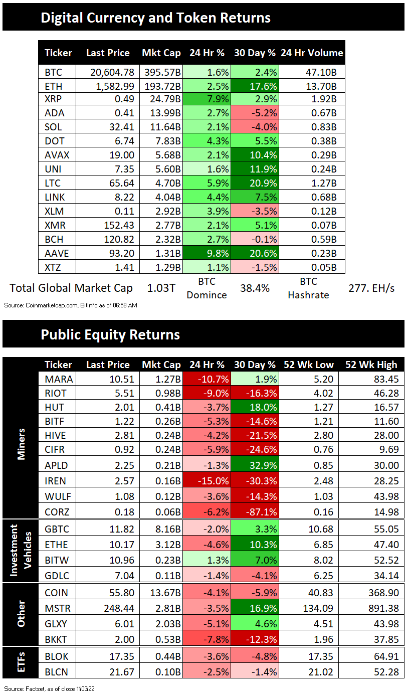 ◾ Riot Blockchain (RIOT) produced 509 bitcoin (6.9 EH/s) selling 450 BTC (88%) in October to fund operations. (Globenewswire)