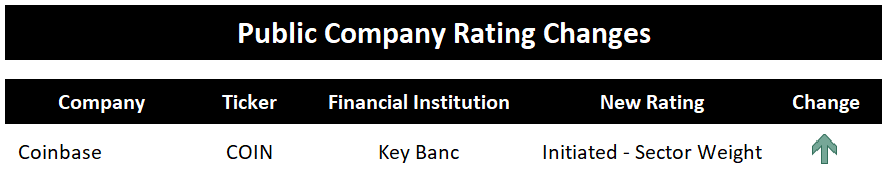 ◾ Blank check company Crypto 1 Acquisition Corp (DAOO) said it does not believe it will consummate an initial business combination in the allotted time and will redeem its issued shares. (Businesswire)